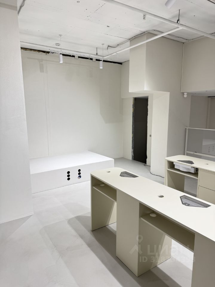 Сдаётся в аренду площадь 50 кв.м на втором этаже цветочного магазина, график работы цветочного магазина с 10 до 22 ежедневно. На втором этаже есть отдельный санузел и небольшое окно во внутренний двор. В помещении установлен подиум под 2 кресла для мастеров педикюра, а также установлены два дизайнерских стола для маникюра на 6 рабочих мест. Предоставляются арендные каникулы.