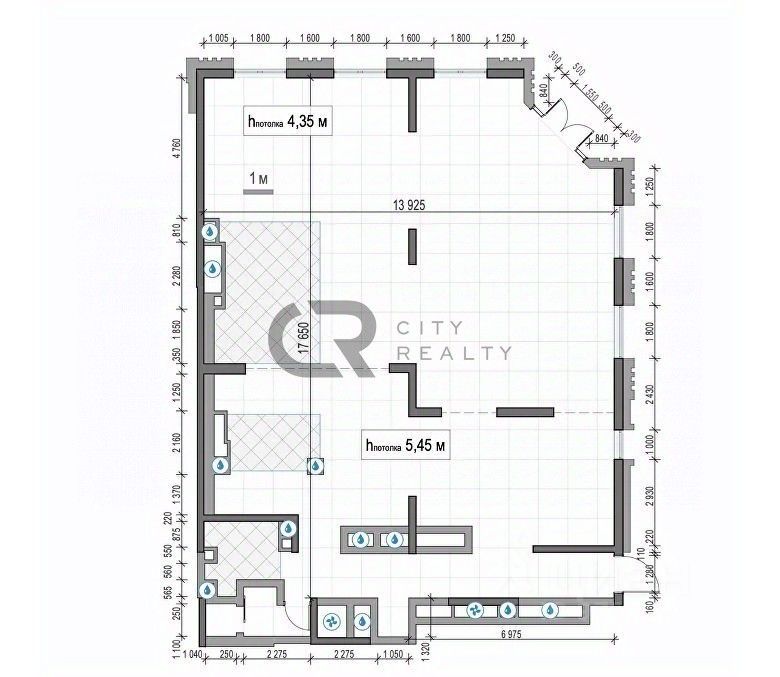 -Предусмотрен подвод механической системы вентиляции без разводки по помещению. Предусмотрено место подключения к забору наружного воздуха, к вытяжным воздуховодам в шахтах, к технологическим воздуховодам. Вентиляционное оборудование и воздуховоды закупаются и монтируются по помещению силами арендатора или собственником помещения в дальнейшем;