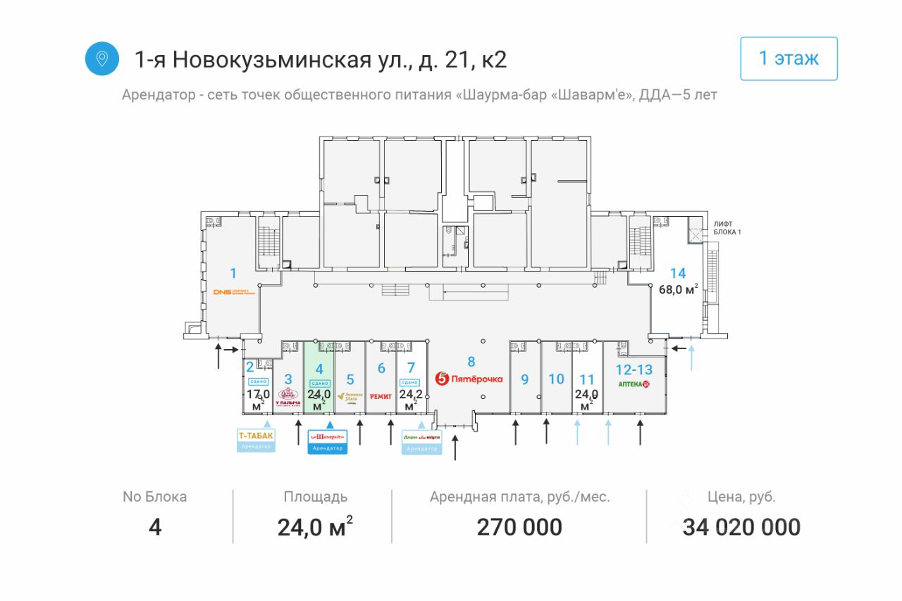 Предлагается в аренду помещение на улице 1-я Новокузьминская, ЮВАО, г. Москва. Объект расположен на первом этаже, в непосредственной близости от станции метро Рязанский проспект — менее 1 минуты пешком. Интенсивный пешеходный поток. Развитая инфраструктура, крупный жилой район.