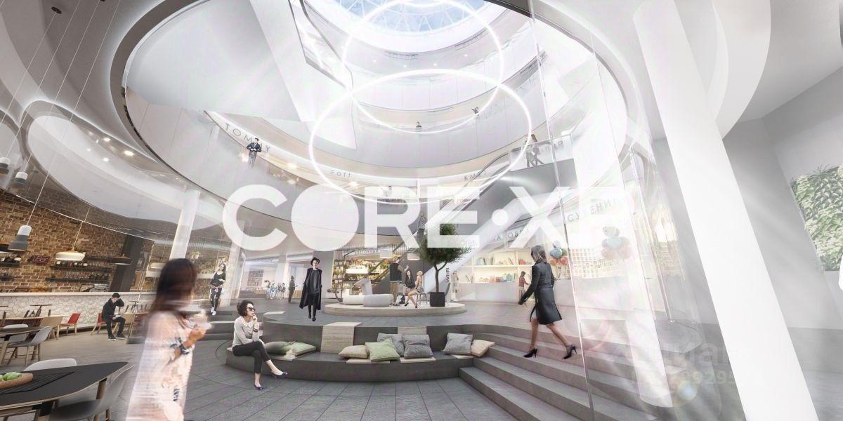 Он состоит из четырех надземных уровней торговых площадей и четырех подземных уровней парковки. Предусмотрено функциональное зонирование. Все этажи соединяет между собой круглым атриумом с мансардным окном.