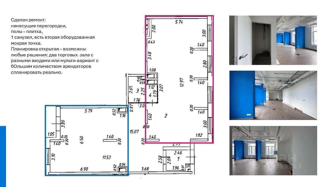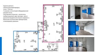 Помещение на первой линии с отделкой, сдается часть 75м²