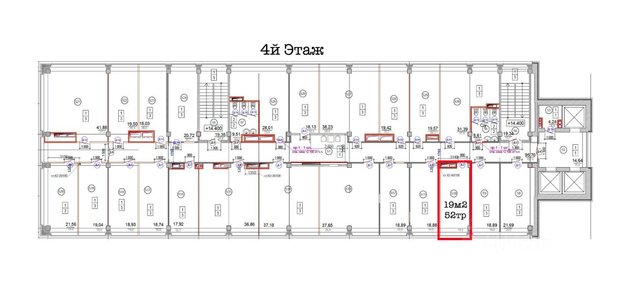 19м2 - 1 кабинет с большим окном, 4й этаж, 51000р, свободно с 01.10,
