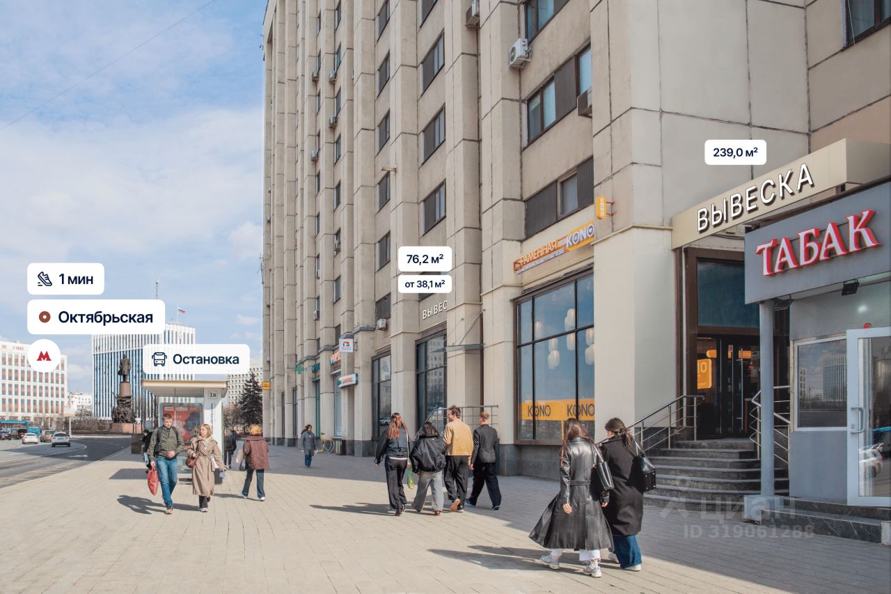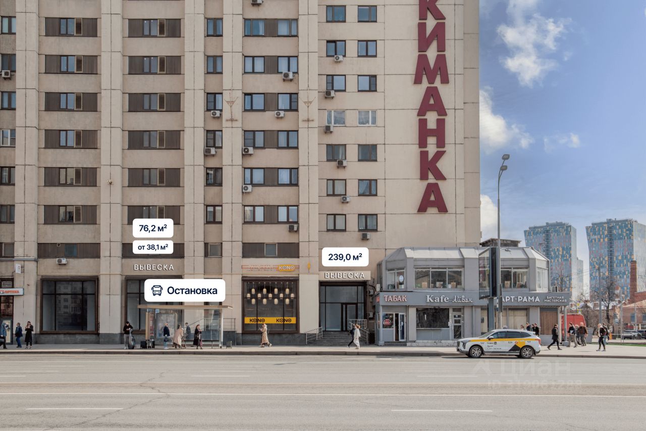 Общий вход c пepвoй линии. Мecтo для рaзмeщeния вывecки. Крупный сложившийся жилой район с высокой плотностью застройки и развитой инфраструктурой. В окружении находятся жилые комплексы "Cult", "Созвездие", большое количество бизнес-центров, Национальный исследовательский технологический университет МИСИС, Российская государственная детская библиотека.