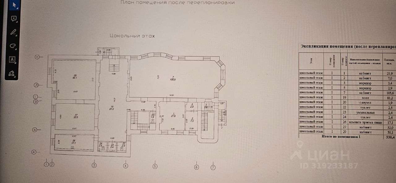 Сдается нежилое помещение 330,4 м.кв. на цокольном этаже по адресу: г. Москва, Рождественский бульвар, дом 21, строение 2, помещение 1/Ц,