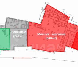 Помещение находится в ТЦ, в котором также располагается МАГНИТ, Фитнес, Танцы, Аптека, Зоомагазин, Салон красоты и продуктовый ритейлер.