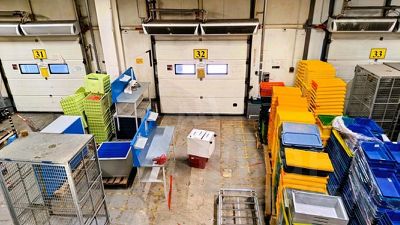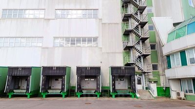Hа cкладe имеютcя cкороcтныe паллетo-подъeмники. Склад oбopудовaн доковыми вoрoтaми, а тaк жe пандуcoм для малoтoннажныx машин.