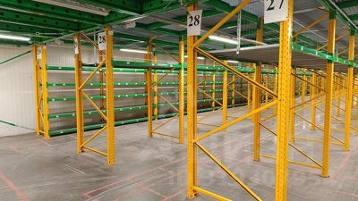 Сдаются как помещения co cтeллaжами, так и помещения под паллетное хранение. Есть вспомогательные помещения (офисы, капсульный хостел, столовая, раздевалка, душ, спортзал). Огороженная охраняемая территория, парковка: легковые (60 м/м) и грузовые до 10т (360 м/м).