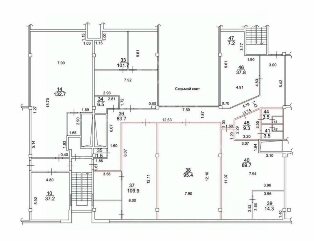Описание помещения: Зона ресепшн, кухня и собственные санузлы. Отдельный вход. Этаж: 7. Планировка: кабинетная (коридорная). Офисная отделка.