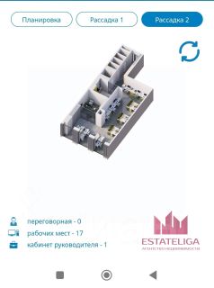 Площадь 120 м² продуманная планировка под 17 рабочих мест, возможность зонирования под open-space или кабинеты.
