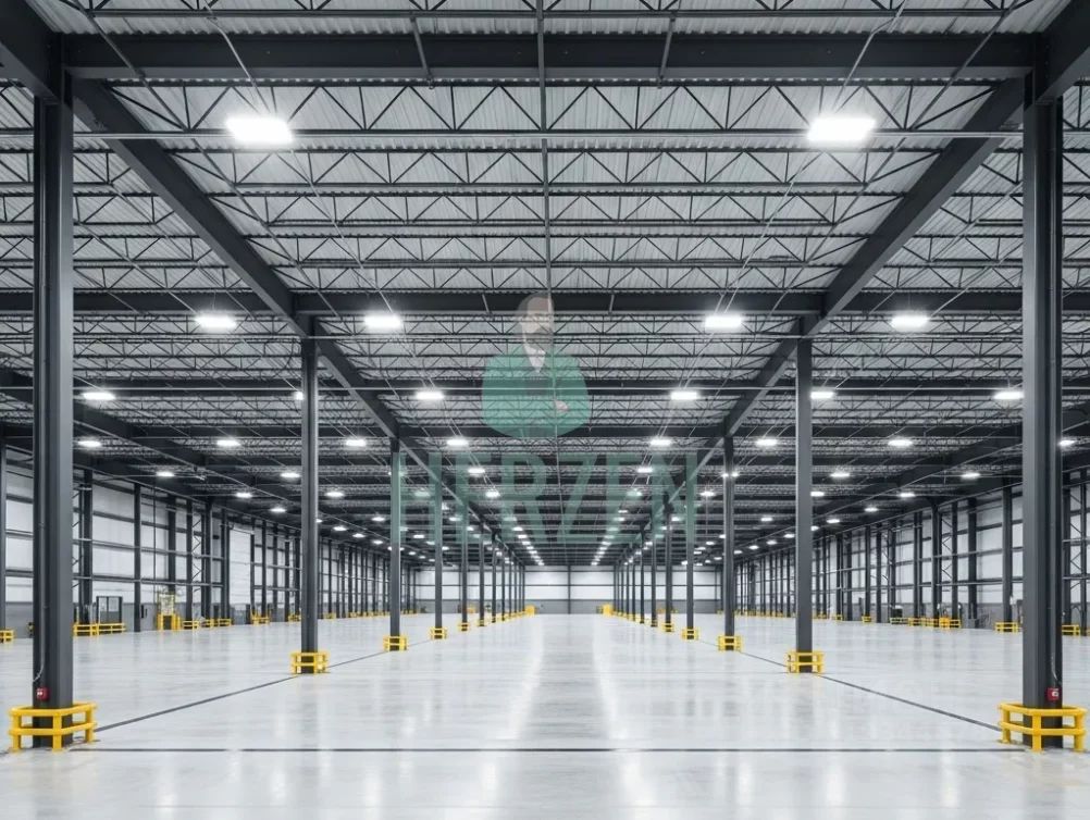 Ровный бетонный пол с антипылевым покрытием. Допустимая нагрузка на пол: складские помещения 8 т/м2.; склад опасных товаров 6 т/м2.; серверная 600 кг/м2.; офис 300 кг/м2.