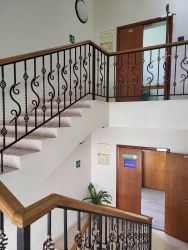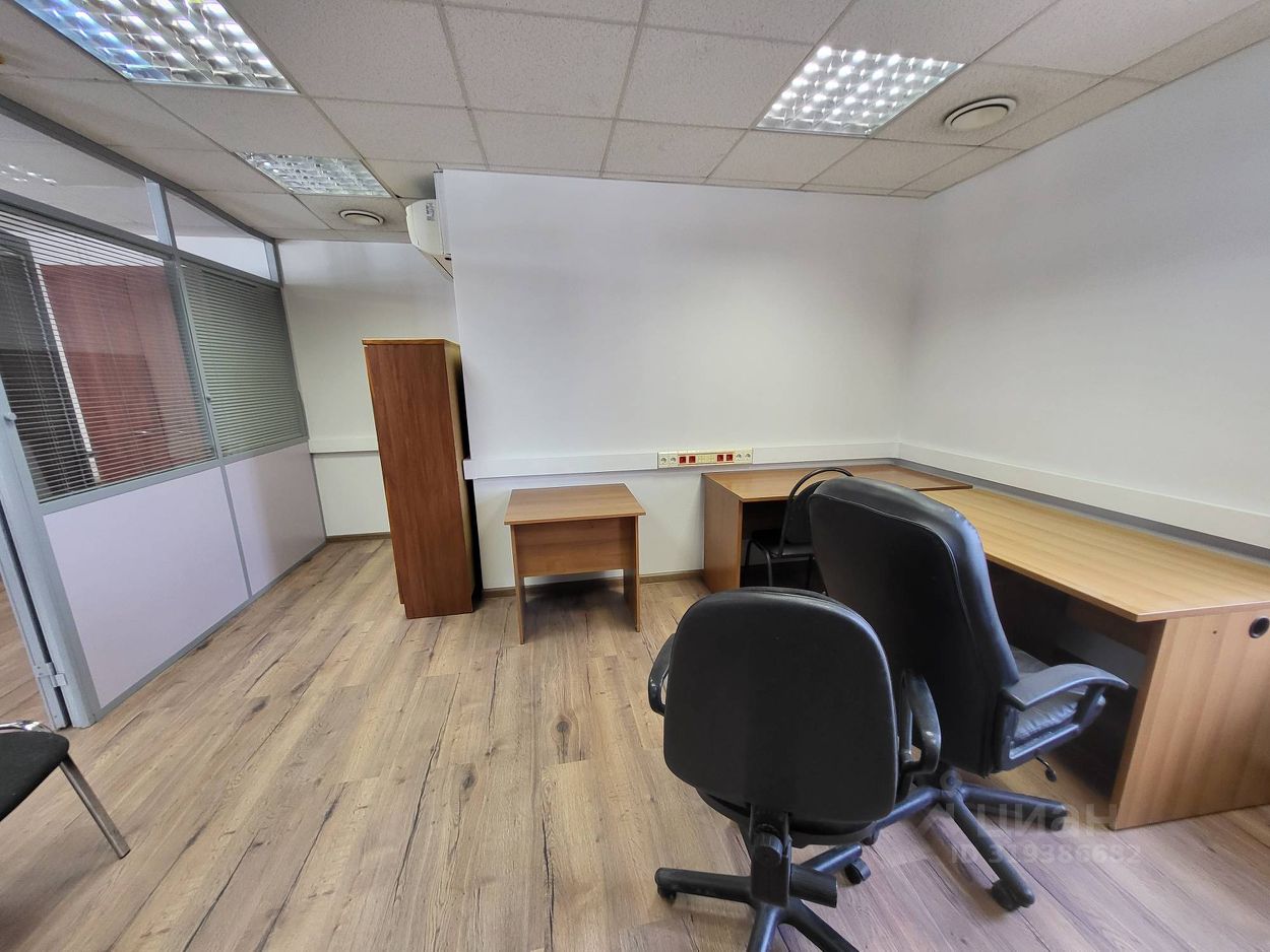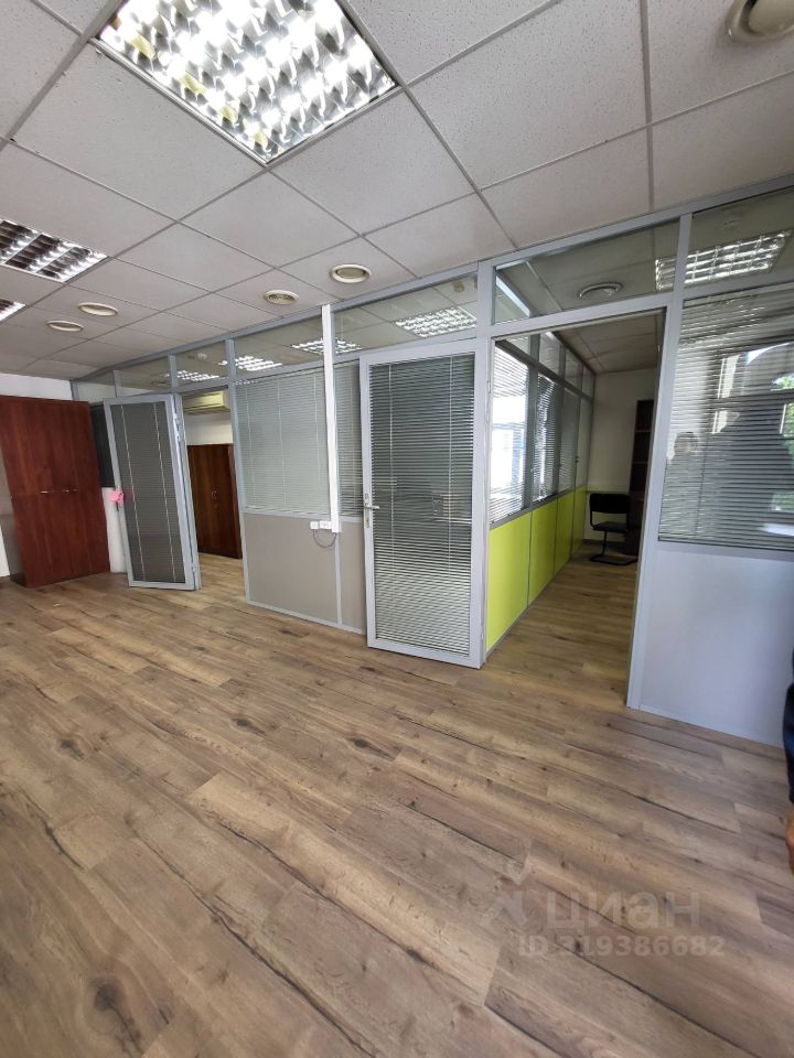 Общая площадь включает три просторных кабинета, выполненных в стандартном офисном стиле со светлыми стенами, ламинатным полом, высокими потолками и большими окнами, а также небольшую кладовую. Санузел находится на этаже.