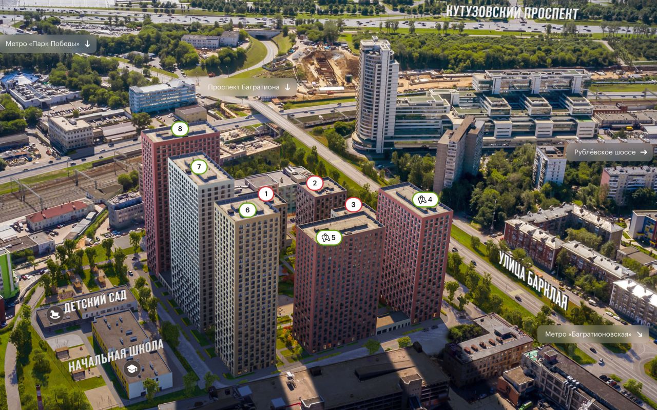 1. Престижная локация: 8 минут пешком от метро "Багратионовская", удобный выезд на основные магистрали Москвы (Кутузовский проспект, ТТК, Можайское, Аминьевское и Рублёвское шоссе, Садовое кольцо).