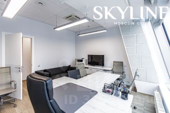 Предусмотрена зона ресепшн, зона ожидания, переговорная комната, два кабинета, кухня, гардеробная, собственные санузлы, серверная с охлаждением.