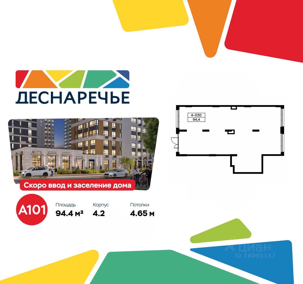 Сдается помещение площадью 94.40. на 1-м этаже ЖК "Деснаречье".