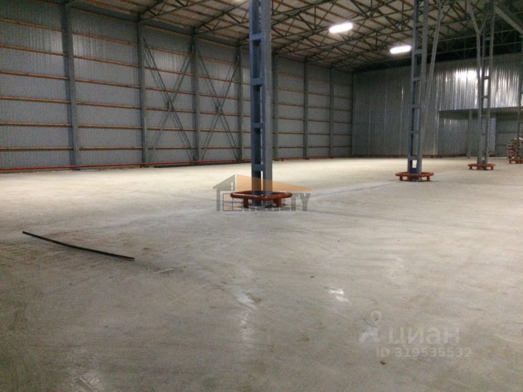 Высота потолка 6 м., 3 ворот на уровне земли, пол антипыль, нагрузка на пол 6 тонн на кв.м.