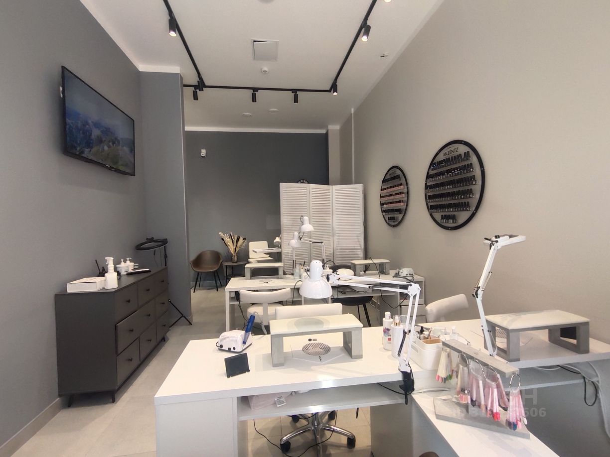* Площадь - 60 м² - просторная студия, 4 места мастера маникюра, 2 педикюрных кресла, отдельный массажный кабинет с медицинской кушеткой, подобные помещения, комната для стерилизации, санузел;