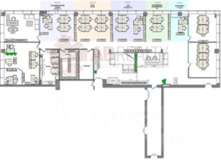7 этаж. В блоке своя кухонная зона, переговорные, кабинеты и т.д.