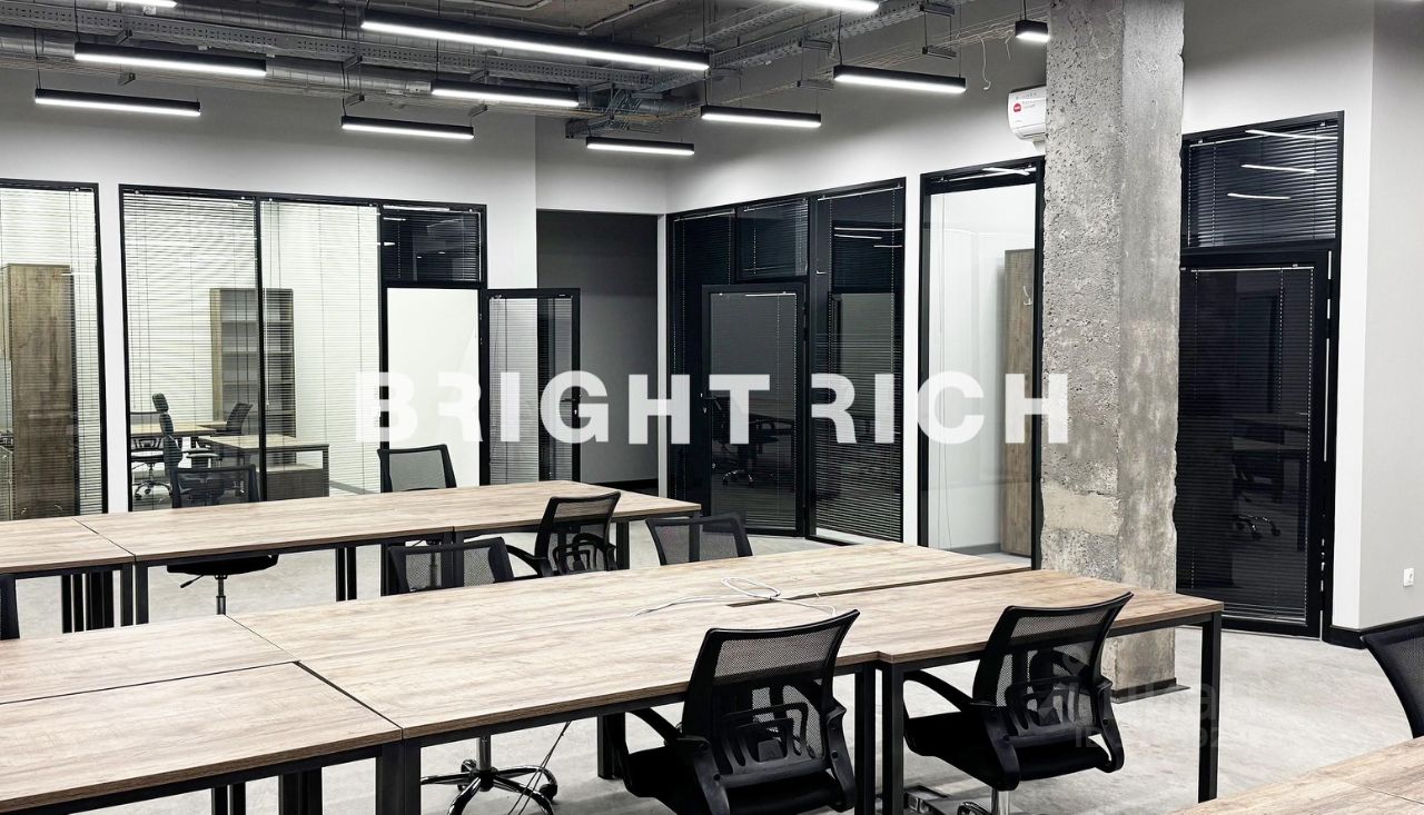 Просторный офис с дизайнерской отделкой и большими окнами; свободно для въезда нового арендатора