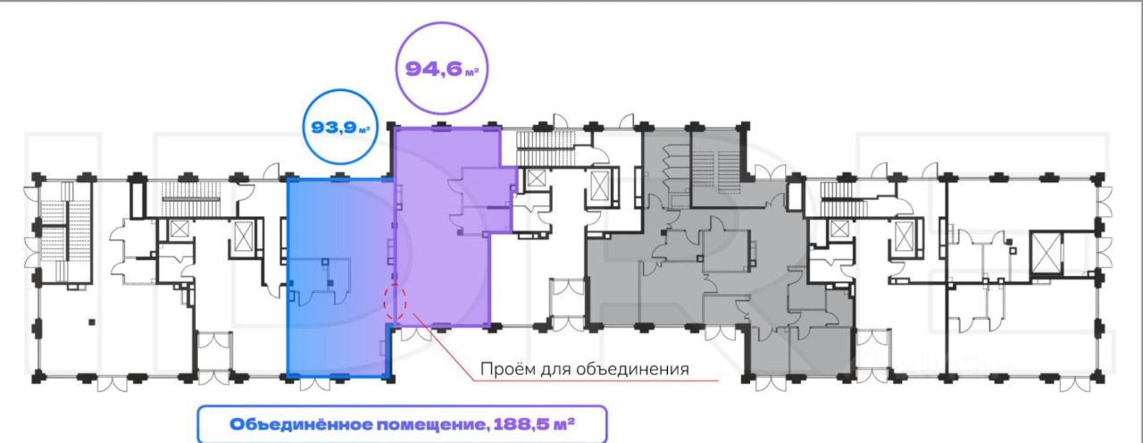 Помещения смежные, с открытыми и функциональными планировками, высокими потолками, витринными окнами и отдельными входами.