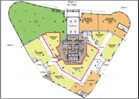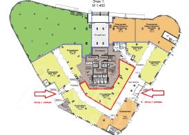 Идеальное место для размещения флагманского бутика, салона красоты, и других предприятий торговли и услуг. Долгосрочный договор аренды. На плане выделен контур помещений выделен красным цветом.