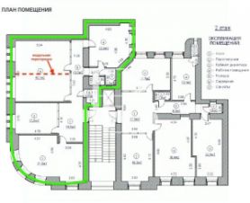 Площадь помещения составляет 151 кв.м., где 4 кабинета, зона ресепшн, кухня, серверная и два санузла. Планировка кабинетная.