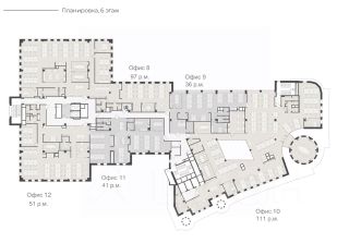 Есть зона ресепшн, переговорные комнаты, зона отдыха, оборудованная кухня и место приема пищи, санузлы.