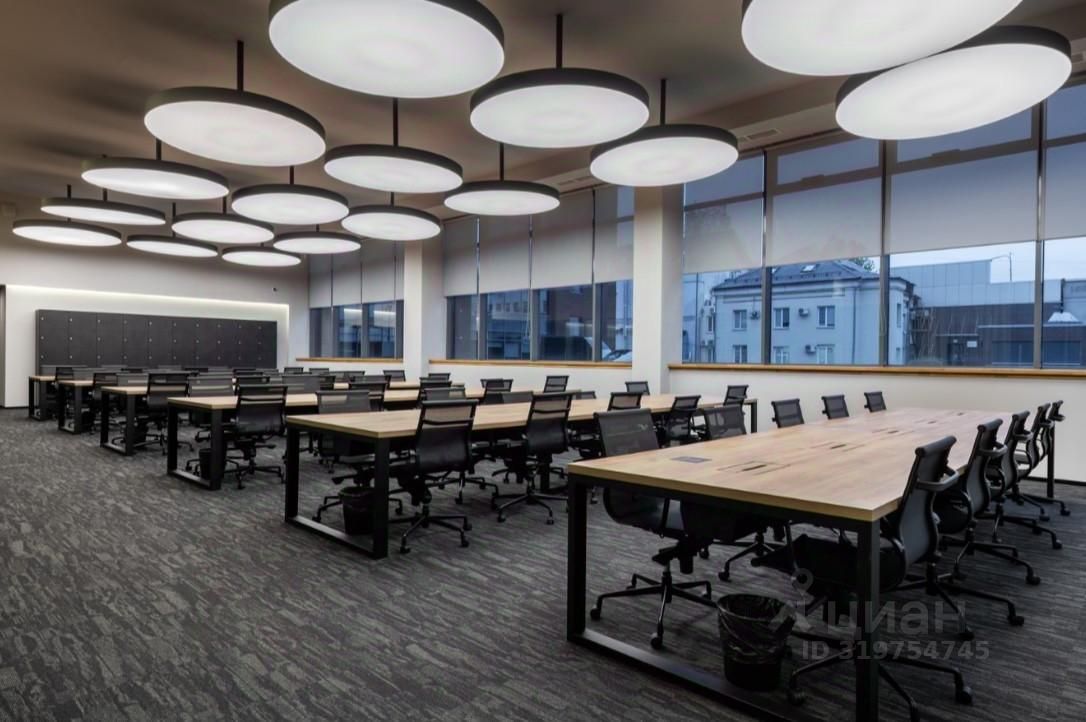 Офис рассчитан на 124 рабочих мест. Так же есть переговорные комнаты, телефонные будки, кухня, санузлы, душевая, лаундж зона.