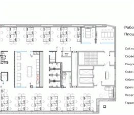 На каждом этаже переговорные комнаты, сан. узлы, гардеробная, комната приема пищи.