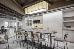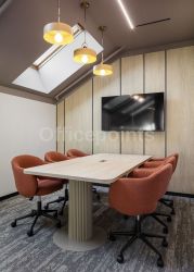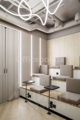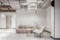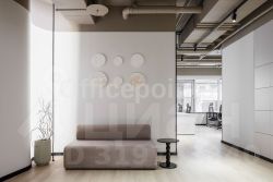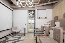 В помещении дизайнерская офисная отделка, кабинетная планировка.