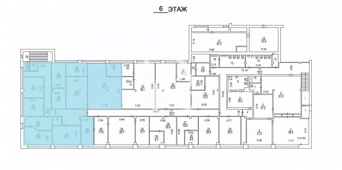 Площадь офисного помещения составляет 332,5 кв.м. 7 этаж. Кабинетная планировка.