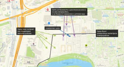 С трёх сторон от дома, где помещение, находятся 2 детских сада и достраивается большая школа - сюда будут ходить все с этого нового микрорайона и частично со старого Измайлово.