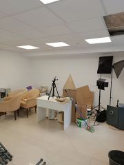 У данного помещения есть отдельный выход во двор - можно разблокировать , по факту будет отдельный блок со своим входом. Есть заглушенная мокрая точка. Сдаётся кабинет ( закрывается), остальной метраж снимает школа скорочтения. Каникулы обсуждаются. Ндс включён.