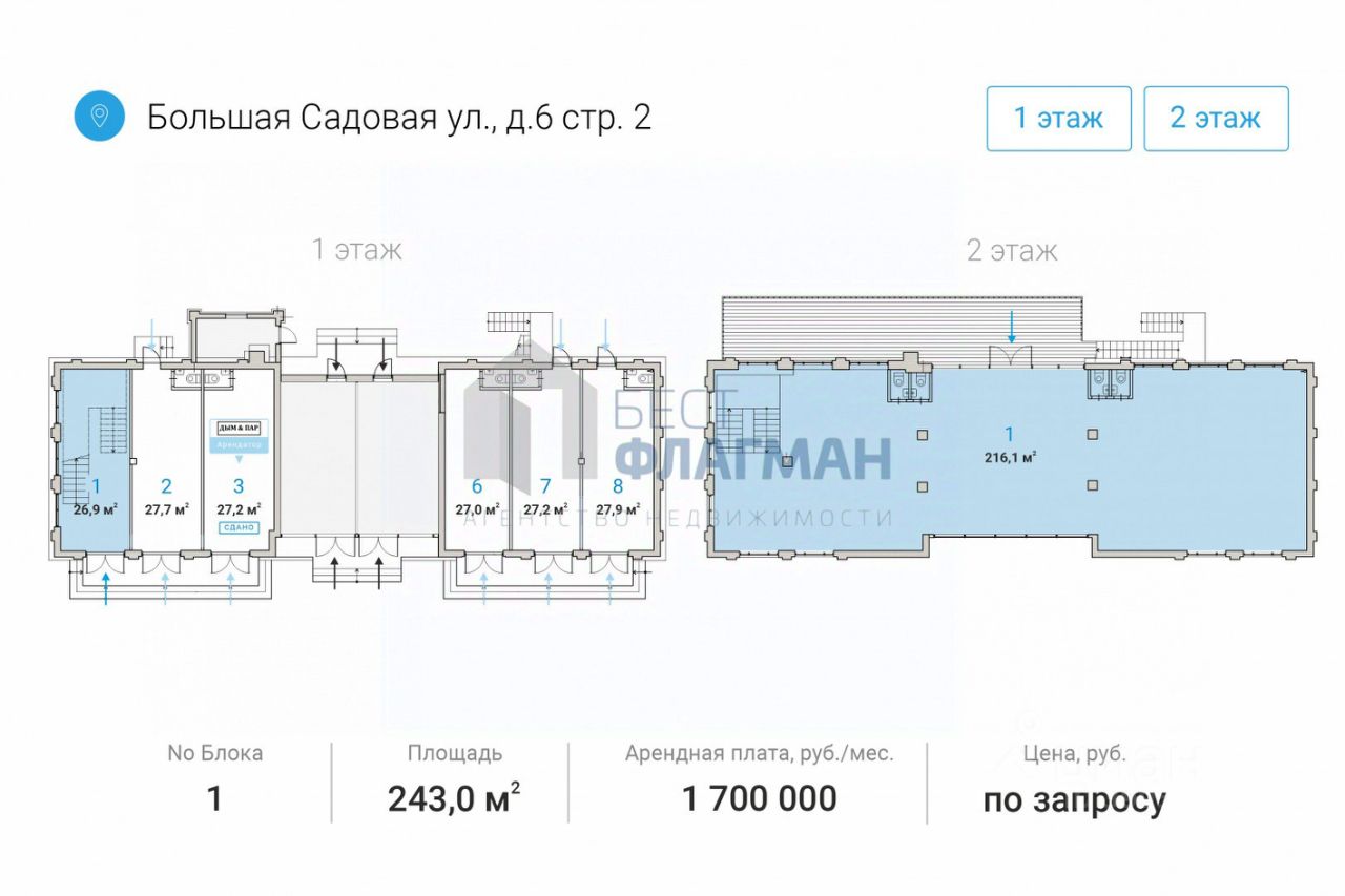 Арт. 80610577 Сдается Помещение площадью 243 кв.м.