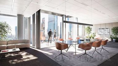 Офис, площадью 1900 кв. м. , расположен на 35 этаже башни SpaceTower (Т2), состоящей из 61 этажа.