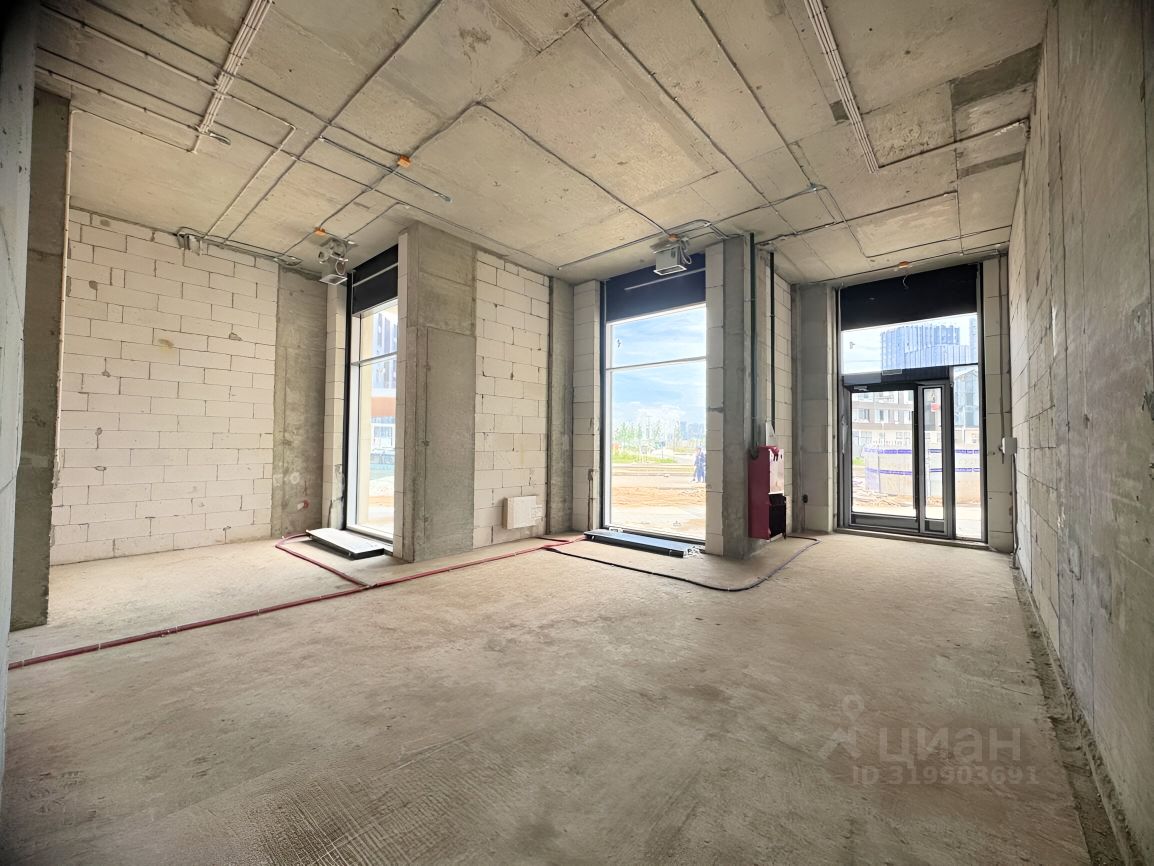 Просторное помещение с большими витринными окнами, фасадом обращено на проезжую часть улицы, проходящую через весь жилой комплекс. Зона пешеходного и автомобильного трафика.