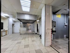 1 уровень- просторный зал с несколькими зонами, профессиональные холодильная камера 4 кв.м. и вытяжка, 2 санузла, 2 зоны с раковинами, техническое помещение;