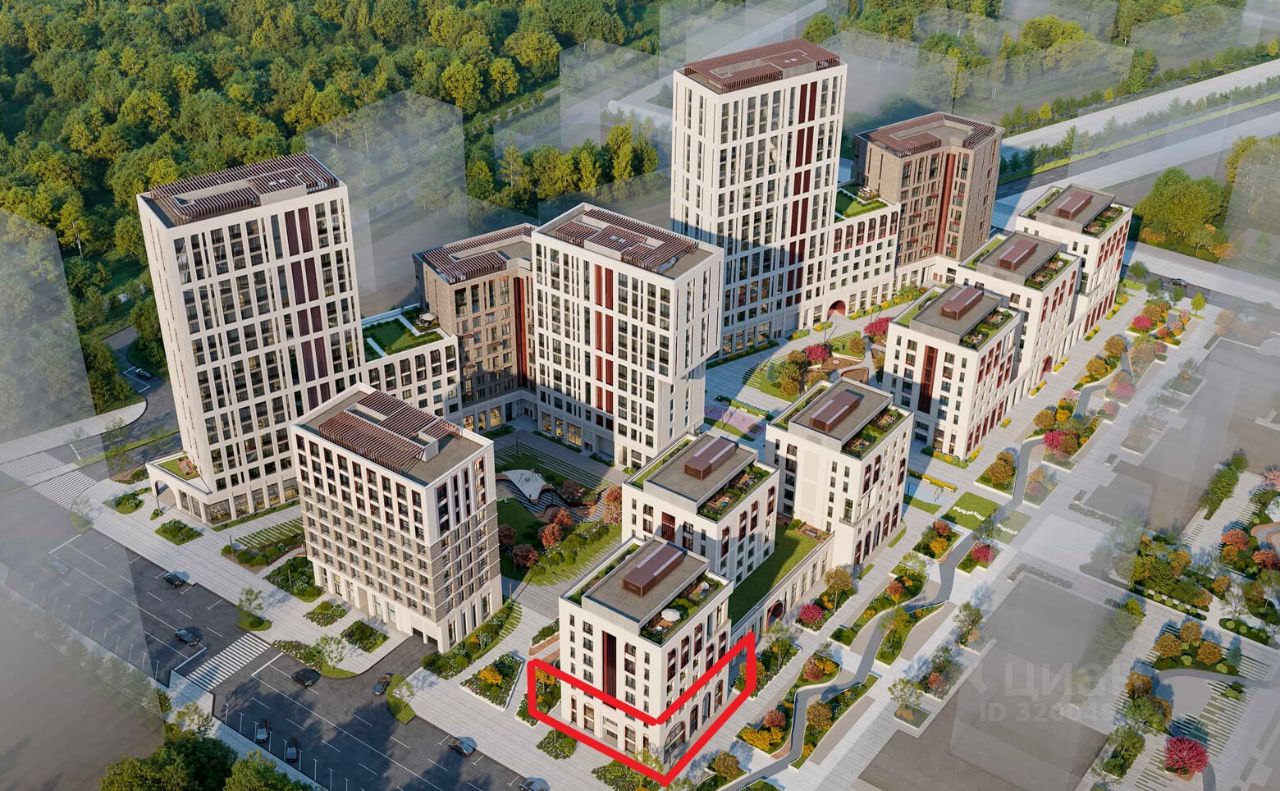 Комплекс состоит из корпусов высотой до 28 этажей, а также разноэтажных домов и малоэтажных таунхаусов с приватной территорией.
