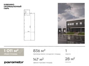 Помещение общей площадью 1 011 м2 в здании К состоит из универсального промышленно-складского блока - 836 м2, двухэтажной офисной части - 147 м2 и грузового мезонина 28 м2. Количество ворот на нулевом уровне от земли 1. Количество легковых и грузовых парковочных мест, включенных в стоимость, зависит от площади помещения.