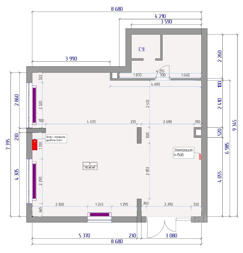 Сдается в аренду нежилое помещение 70,10 кв. м. на 1-м этаже жилого дома по ул. Потаповская роща 26к1, Жилой комплекс Белые Ночи.