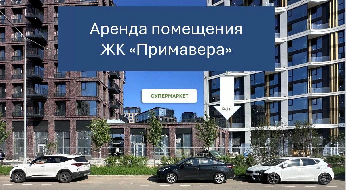 Помещение в стилобате рядом с супермаркетом — соседняя дверь, квартал Вивальди, корпус 4, ЖК премиум-класса "Примавера". Расположение - в прямой видимости со стороны набережной, на улице, разделяющей 2 очереди проекта, и далее — другие ЖК, жители которых пойдут к реке здесь же. Это единственное, кроме супермаркета, помещение в стилобате, зона разгрузки удобная, парковка есть. Ключи в конце года.