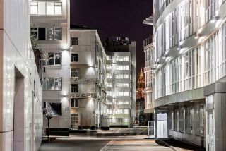 В каждом строении своя охрана + охрана по периметру комплекса.