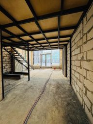 Площадь первого этажа составляет 70 м2, входная группа- высота потолков 6,3м далее 3,2 м.