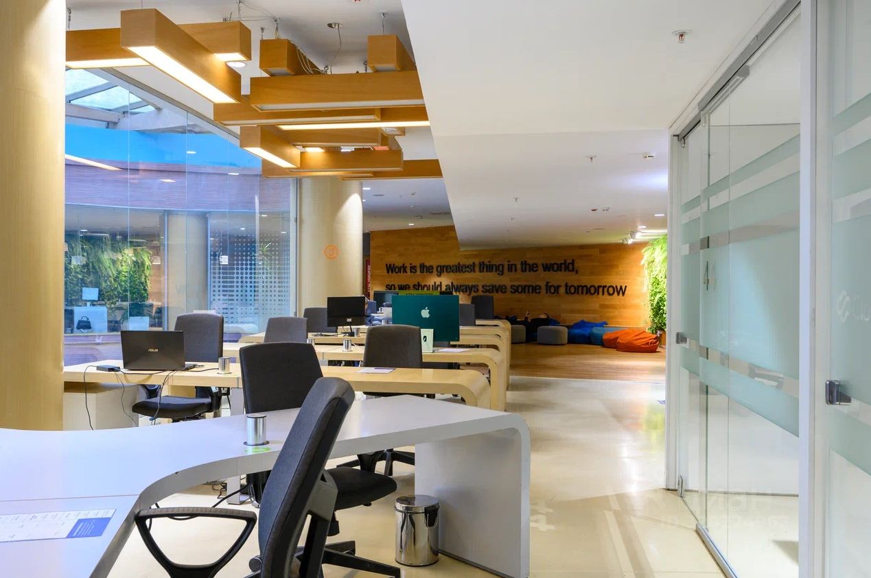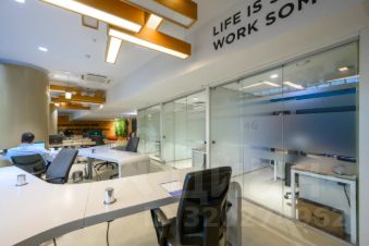 Современный офис с дизайнерской отделкой и функциональной планировкой.