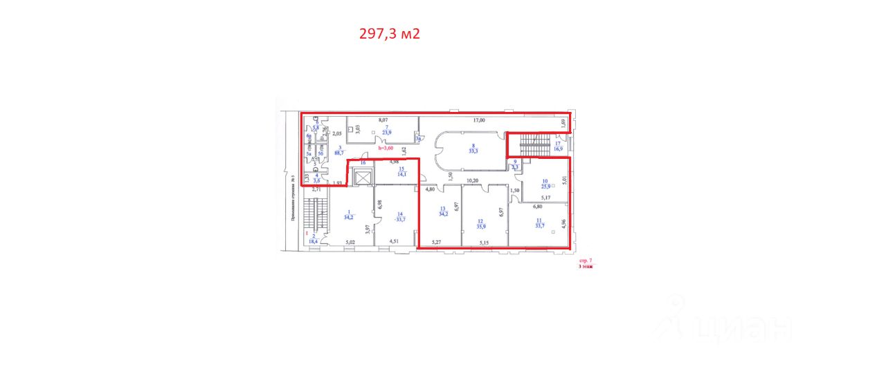 Прямой договор с собственником. Отличный офисный блок практически на весь этаж, площадью 297,3 м2 со всеми необходимыми инженерными коммуникациями, в т.ч. кондиционирование, выполнен ремонт, в блоке расположены свои с/у.