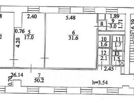 Высота потолков: 1 этаж - 3,56 метра; 2 этаж - 3,7 метра; 3 этаж - 3,46 метра; 4 этаж - 3,4 метра; подвал - 2,25 метра.