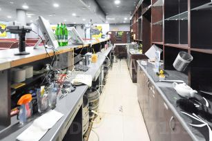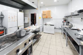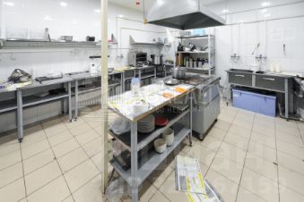 -На кухне вытяжка, разделочные сервировочные столы, хоспер, мойки, плита (неидукционная), свч, холодильники, морозильный ларь и т.д.