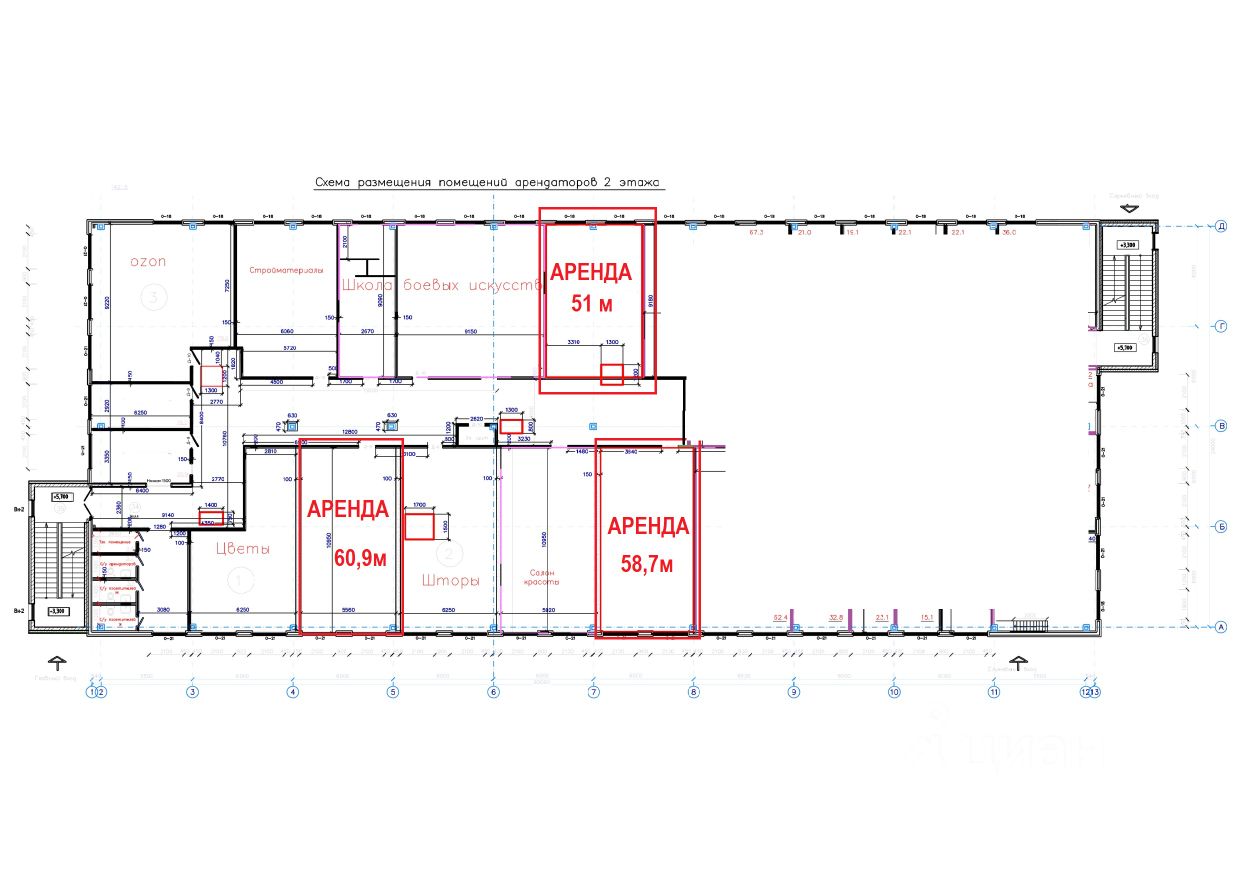 Вашему вниманию предлагаются торгово-офисные помещения на втором этаже многофункционального центра.