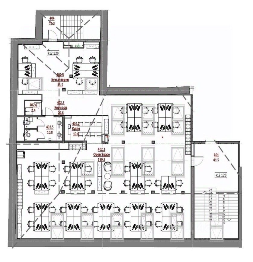 Предлагаем к аренде офис 283 м² на 4 этаже, а также на мансарде.