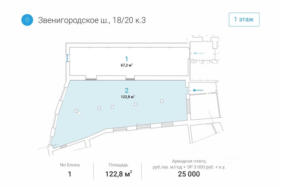 Арендный платеж - 25 000 рублей кв.м/год, вкл. НДС 20% + ЭР 3 000 рублей + КУ.