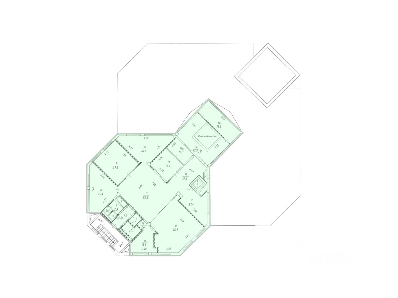 Арендная ставка: 61 609.2 руб./кв. м в год.